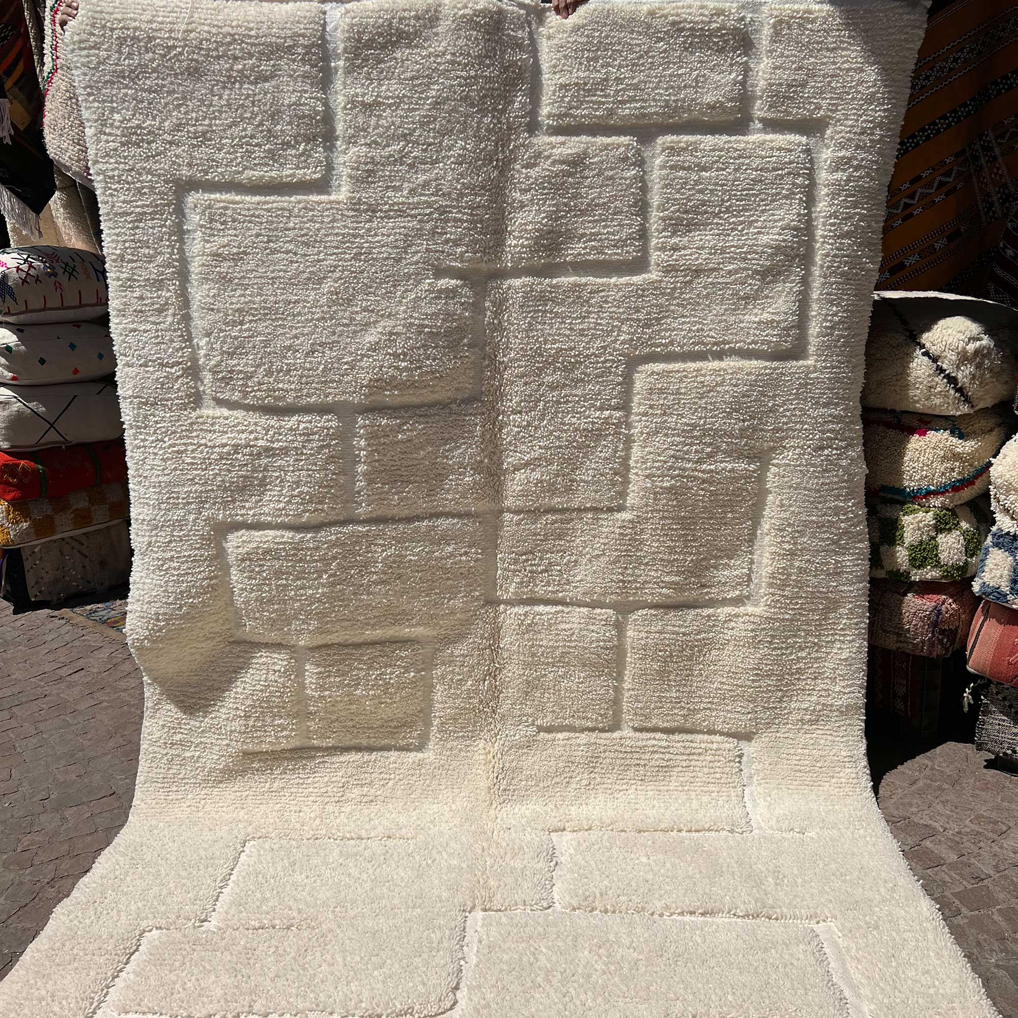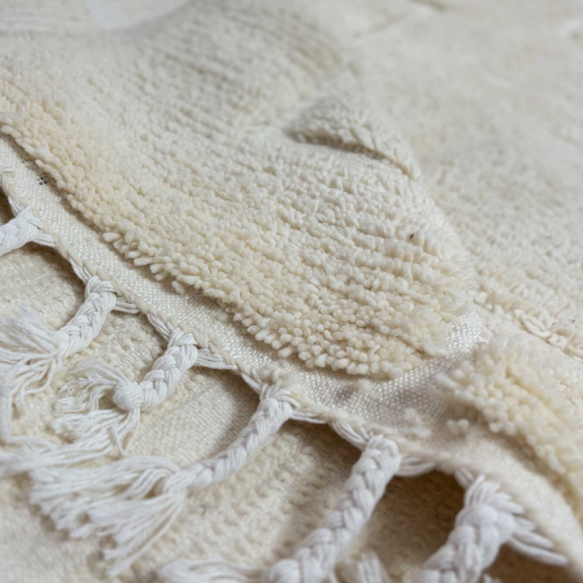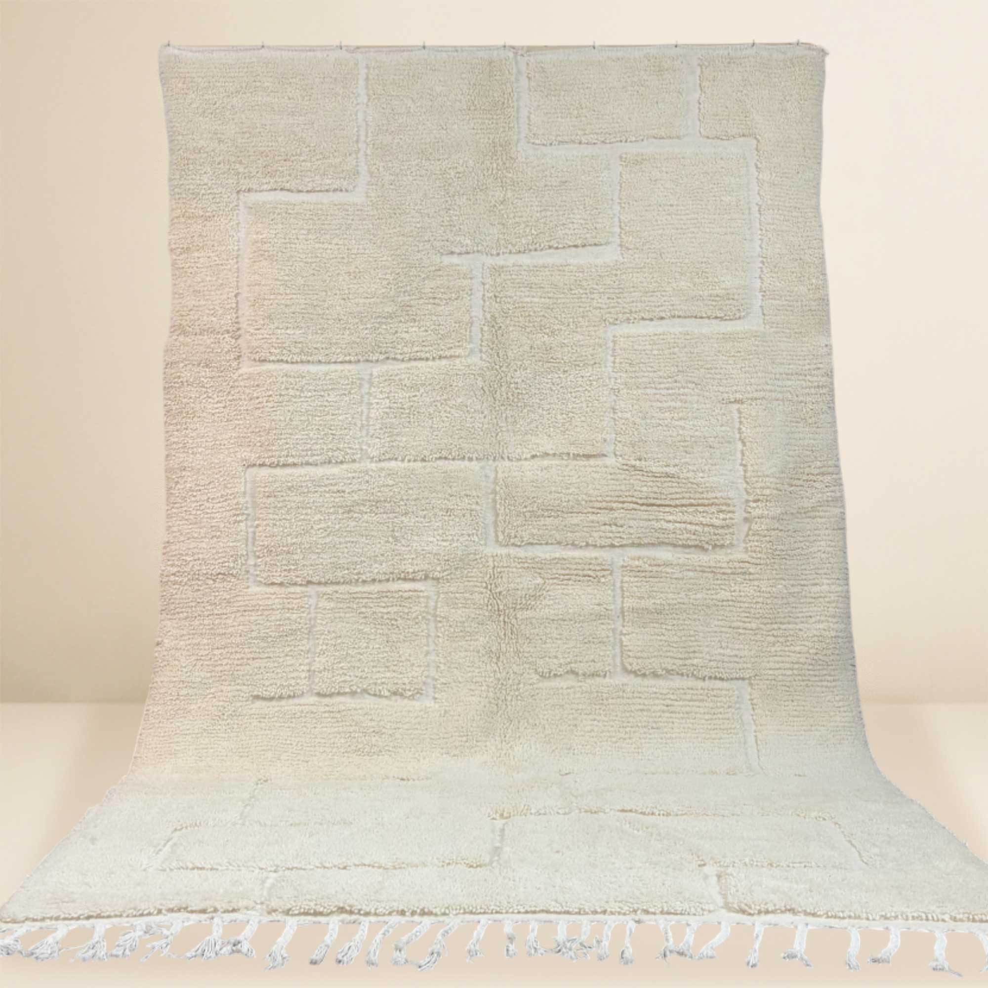 Ce tapis berbère Beni Ouarain se distingue par son design géométrique épuré, mettant en avant un motif de carrés et de lignes en relief. Tissé à la main dans une teinte blanche douce, il offre un style minimaliste et moderne, idéal pour ceux qui apprécient la simplicité avec une touche de sophistication.